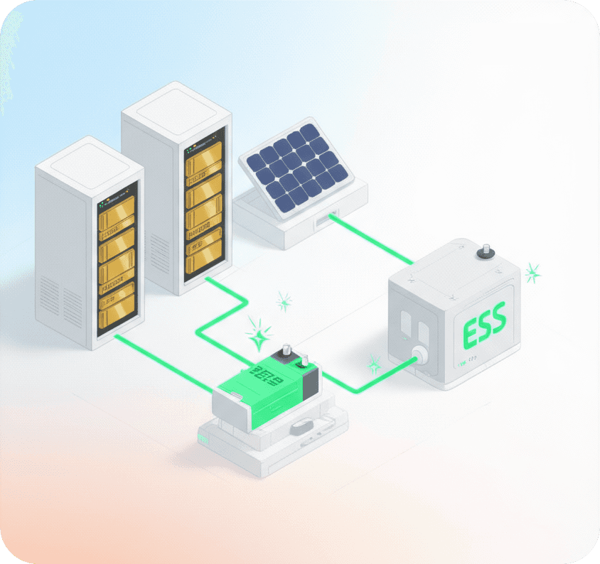 800 V DC backbone + renewable ESS + solar integration.